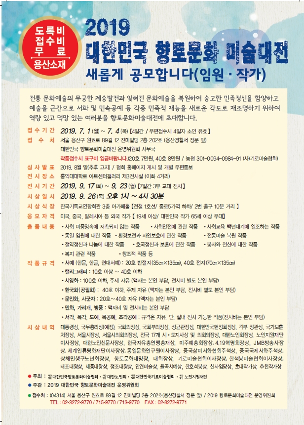 2019 대한민국향토문화미술대전(임원작가) 공모안내