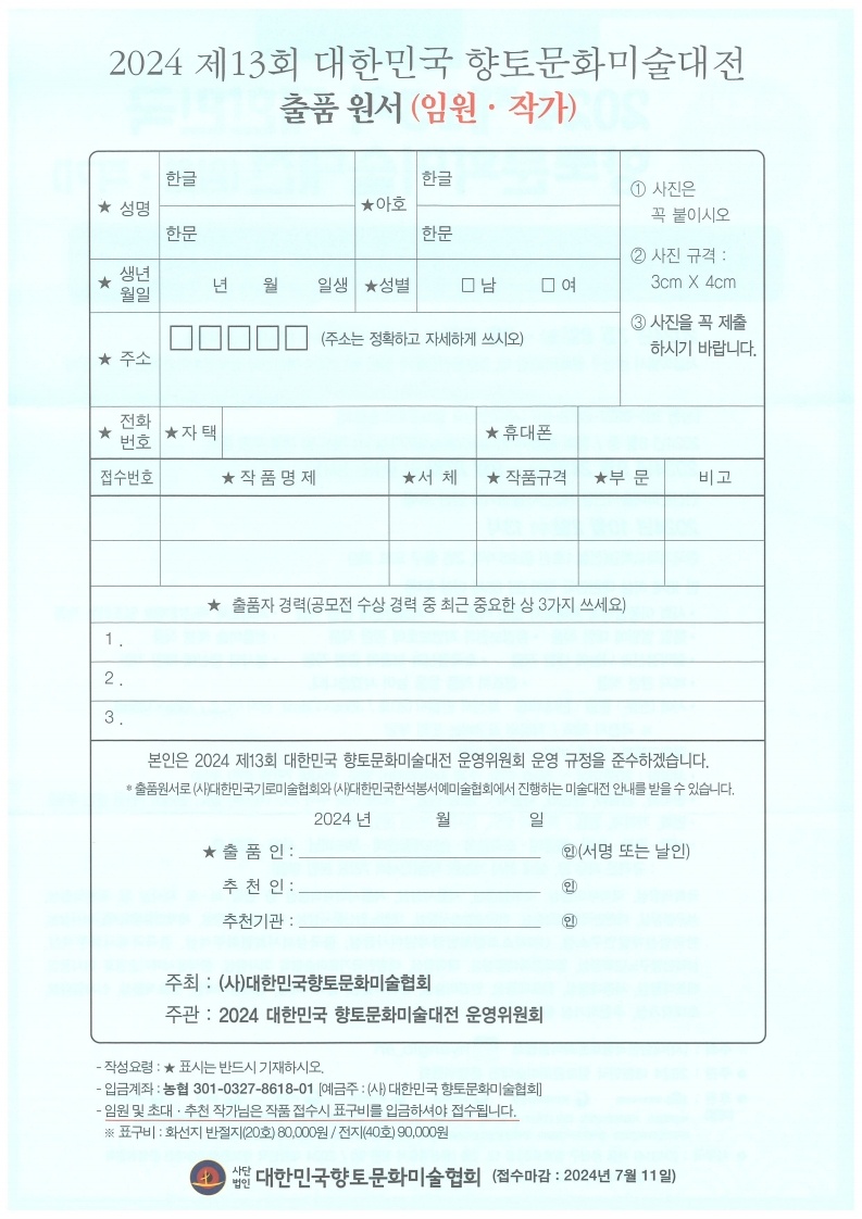 2024 제13회 대한민국향토문화미술대전 (작가)